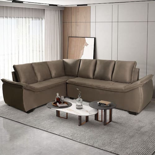 Sofá de Canto 6 Lugares Alphaville Siena Móveis Veludo Elefante
