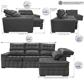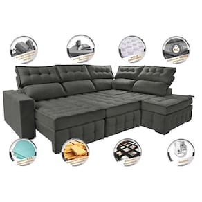 Sofá de Canto Direito 2,65x2,30m Retrátil e Reclinável com Molas Ensacadas Cama inBox Nobre. - Cinza