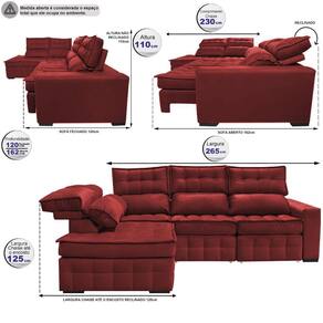 Sofá de Canto Esquerdo 2,65x2,30m Retrátil e Reclinável com Molas Ensacadas Cama inBox Nobre. - Vermelho
