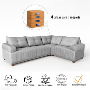 Seu formato em L com medidas de 1,77m x 2,57m é perfeito para aproveitar melhor o espaço do ambiente. Acompanha almofadas decorativas que trazem ainda mais charme à decoração. O sofá é enviado direto da fábrica, embalado em 4 caixas para facilitar o transporte, com montagem simples e rápida. Ideal para quem busca sofisticação sem abrir mão da praticidade no dia a dia.