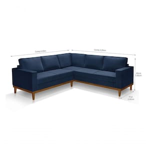 Sofá De Canto Living 5 Lug. Toronto Com Base Retro Madeira De Reflorestamento - Veludo Azul