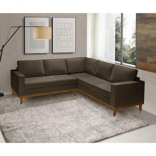 Sofá de Canto 5 Lugares Toronto medindo 2,30 x 2,20 x 0,82, assento com espuma D26, manta acrílica e percintas de borracha, encosto fixo, sendo as almofadas do encosto com espuma D26 + manta acrílica e percintas elásticas de apoio, cada braço mede 0,14cm de largura com espuma D26. Estrutura em madeira maciça de Eucalipto/Pinus 100% reflorestamento, Tecido 100% Poliéster. Suporta até 110 kg distribuídos sobre a área do assento. Os tecidos podem sofrer alterações de tonalidade, dependendo do lote de produção e também em relação a tela do seu monitor/celular, produto produzido de forma artesanal podendo haver pequenas variações nas medidas, Os objetos de decoração que ambientam as fotos não acompanham o produto; Nossos produtos são padronizados, não permitindo qualquer personalização dos mesmo; certifique-se que o percurso que o produto fará permite a passagem, não nos responsabilizamos pela montagem/instalação do produto. Nos responsabilizamos pela entrega até a porta/portaria. Após a conclusão da entrega no endereço solicitado, o transporte até o local de uso ficara sob responsabilidade do cliente, caso neste momento haja problemas ou danos no produto, ficará a cargo do mesmo: As transportadoras não sobem escadas ou elevadores;