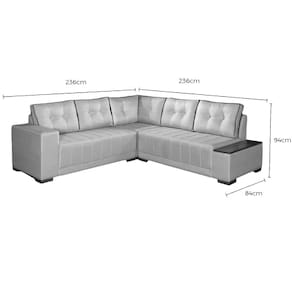 Sofá de Canto Ouro Fino 7 Lugares 236cm x 236cm Tecido Linho Lufer Crie um refúgio de conforto e estilo em sua casa com o Sofá de Canto Ouro Fino 7 Lugares 236cm x 236cm Tecido Linho Lufer. Com espaço de sobra para 7 lugares, ele é o convite perfeito para relaxar e desfrutar de momentos inesquecíveis. O seu tecido oferece uma textura macia e um visual refinado que eleva a decoração do seu espaço. Seu design de canto inteligente otimiza o uso do ambiente, enquanto a construção de qualidade assegura um conforto duradouro. É mais do que um sofá, é o centro das suas celebrações, filmes em família e conversas descontraídas.\nMEDIDAS\nAltura 94cm\nLargura 236cm x 236cm\nProfundidade 84cm\nCARACTERÍSTICAS\nFabricante Lufer\nModelo Sofá de Canto Ouro Fino\nGarantia 3 meses\nTipo de Produto Sofá de Canto\nAmbiente Sala\nEstrutura Madeira Eucalipto de Reflorestamento Seca e Imunizada\nTecido Revestimento Linho\nAssento Espuma soft D28 e percintas elásticas\nEncosto Almofadas soltas preenchidas com fibra siliconada\nDetalhe Tampo de Madeira\nMaterial Pés Madeira\nINFORMAÇÕES IMPORTANTES\nObjetos decorativos que porventura apareçam na foto, não acompanham o produto. Não nos responsabilizamos pela montagem/instalação dos produtos.\nMontagens, desmontagens e instalações são responsabilidades do cliente. Indicamos que contrate uma empresa de montagem ou um montador de sua confiança.\nAlém disso, favor verificar se os pés e acessórios estão dentro do forro inferior do produto. Em suma, todas as informações divulgadas sobre o produto são de responsabilidade do Fabricante.\nAs cores do produto podem variar de acordo com o seu monitor, a iluminação do ambiente em que você está e até mesmo a sua percepção visual. Além da cor, pequenos detalhes e acabamentos podem não ficar evidentes na foto, por isso as imagens são meramente ilustrativas.