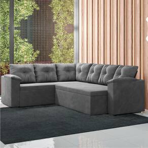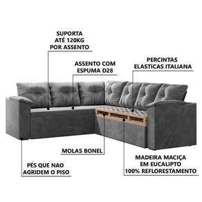 MODELO: Sofá de Canto Retrátil 5 Lugares Veludo com Molas no Assento Selmer