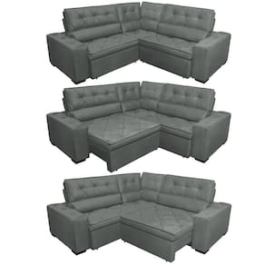Sofa De Canto Retrátil E Reclinável Com Molas Cama Inbox Austin 2,70m X 2,70m Suede Velusoft Cinza