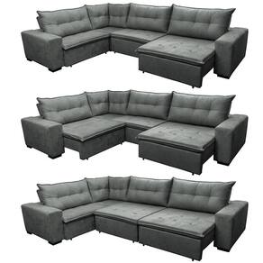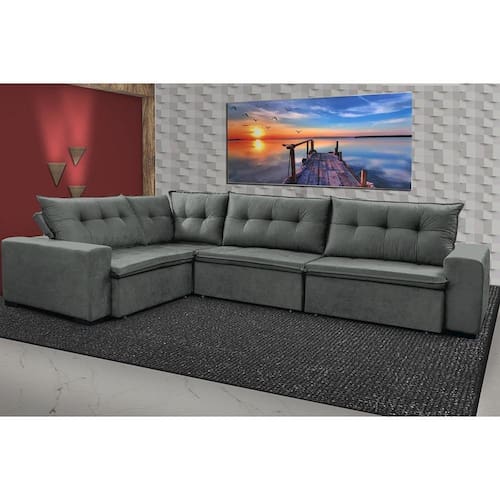 Sofa De Canto Retrátil E Reclinável Com Molas Cama Inbox Oklahoma 3,85x2,61 Ou 2,61x3,85 Cinza Chegou o Maravilhoso Sofá de Canto Retrátil e Reclinável com Molas Cama inBox Oklahoma. O que o torna especial são assentos com espuma D33 envolvidas em fibra Siliconada Compactada para que tenha um toque gostoso e aconchegante, proporcionando conforto de um colchão em um Belíssimo Sofá, além de seu maravilhoso designer ele te posibilita escolher onde deseja o canto ou o lado maior de acordo com sua sala basta apenas mudar o modulo central de lado e conectar os modulos novamente. Sua sala jamais será como antes! Características: -Encosto Reclinável com 5 posições, almofadas fixas compostas de 80% fibra siliconada e 20% flocos de espuma e percintas elasticas para maior conforto. -Assentos: Retráteis com espuma D33 envolvidas em fibra SILICONADA compactada, Molas espiral, percintas Pneumáticas com feltro para proteger do atrito com as molas. -Braços: Com 25cm de largura e com espuma D23 e costuras duplas. -Fixação: Grampos galvanizados -Estrutura de Madeira maciça 100% eucalipto de reflorestamento, produto ecologicamente correto -Tecido suede com toque aveludado