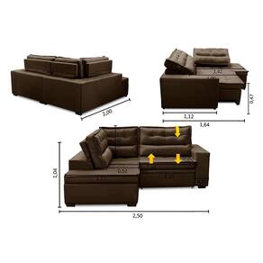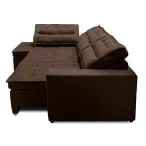 Sofá de Canto Retrátil e Reclinável com Molas LE 3,00x2,00m Viviane Suede Marrom Madelina Decor