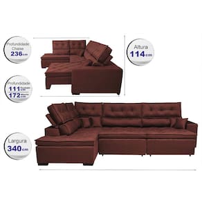 Sofa de Canto Retrátil e Reclinável com Molas Platinum Esquerdo 3,40x2,36 Suede - Vinho