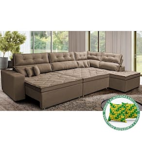 Sofá De Canto Retrátil E Reclinável Direito 3,00x2,36m Molas Cama Inbox Espanha Velusoft Castor
