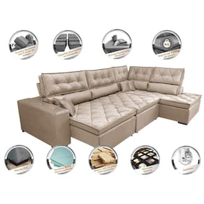 Sofá de Canto Retrátil e Reclinável Direito 3,40x2,36m Molas Cama inBox Espanha. Velusoft - Bege