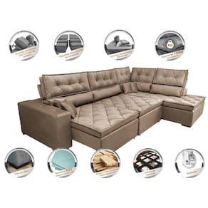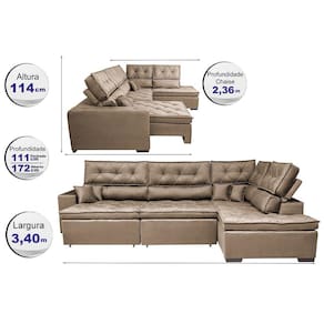 Sofá de Canto Retrátil e Reclinável Direito 3,40x2,36m Molas Cama inBox Espanha. Velusoft - Palha