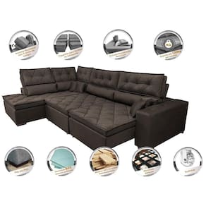 Chegou o Maravilhoso Sofá de Canto Retrátil e Reclinável com Molas Cama inBox Espanha. O que o torna especial são assentos com espuma D33 envolvidas em fibra Siliconada Compactada para que tenha um toque gostoso e aconchegante, além de seu maravilhoso designer com costuras duplas e puxes que o embelezam, proporcionando conforto de um colchão em um Belíssimo Sofá. Sua sala jamais será como antes!