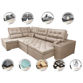 Chegou o Maravilhoso Sofá de Canto Retrátil e Reclinável com Molas Cama inBox Espanha. O que o torna especial são assentos com espuma D33 envolvidas em fibra Siliconada Compactada para que tenha um toque gostoso e aconchegante, além de seu maravilhoso designer com costuras duplas e puxes que o embelezam, proporcionando conforto de um colchão em um Belíssimo Sofá. Sua sala jamais será como antes!