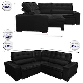-Braços: Com 25cm de largura e com espuma D23 e costuras duplas.