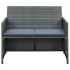 - Cor: cinza- - Material: rattan PE (polietileno) + estrutura de aço com revestimento em pó- - Material da almofada: capa 100% poliéster com enchimento de espuma- - Dimensões: 39,4 “x 22" x 33,5" (L x P x A) - - Largura do assento: 37"- - Profundidade do assento: 15,7"- - Altura do assento em relação ao solo: 16,5 ”- - Altura do apoio de braço em relação ao solo: 26,4"- - Espessura da almofada: 1,97"- - A capa de almofada é removível - - A entrega inclui: - - 1 x sofá- - 2 x almofada de assento- - - Tecido: poliéster: 100% - - A almofada e a almofada são apenas para uso externo. Não os leve para dentro da casa
