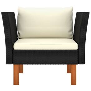 Sofá de pátio preto vidaXL com almofadas branco-creme — Sofá externo de polirattan com pernas de madeira maciça de eucalipto e estrutura de aço revestida a pó