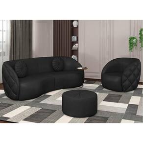 Perfeitamente elegante e moderno, o Sofá Decorativo 3 Lugares 288cm com Almofadas e Poltrona Zion M22 Sintético Preto, da Mpozenato, serão os ícones de desejo de todos aqueles que você receber na sua sala de estar. Afinal, será amor à primeira vista, pois cada detalhe do design tanto do sofá 3 lugares quanto da poltrona decorativa expressa aconchego, conforto e receptividade. Confira!
