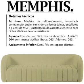 Sofa Decorativo 4 Lugares 332 cm Memphis Boucle, é a escolha certa para você que busca conforto e bem-estar, tornando o ambiente em que estiver muito mais elegante e moderno. Estrutura em madeira de reflorestamento (pinus, eucaliptos e placas de MDF) e cintas elásticas de alta resistência. Composto por madeira imunizada contra mofo, cupim e microrganismos, revestimento em tecido boucle, encosto fixo em espuma D-23 com manta acrílica, assento em espuma D-26 com manta acrílica, braça em espuma D-23, adornos em espuma D-23, acabamento inferior em kami, acompanha sapatas plásticas. Suportando até 130 kg por assento. Possui design diferenciado, que oferece sofisticação, versatilidade e charme ao seu ambiente. Este móvel chegará na sua casa separado em 02 volumes.