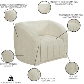 Sofá Decorativo 4 Lugares 332cm E Poltrona Meris M22 Boucle Cru - Mpozenato