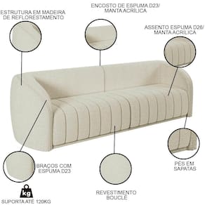 Para ter uma sala de estar moderna e completa o segredo é investir em um sofá confortável e, ao mesmo tempo, que expresse em seu design um toque de elegância ao ambiente. O conjunto de Sofá Living Decorativo 4 Lugares 332cm com Poltrona Meris M22 Boucle Cru, da Mpozenato, revela esse conceito e vai fazer a diferença na sua sala.