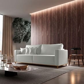 Design diferenciado, qualidade impecavel. A sua sala de estar so esta completa na presenca de um bom sofa e nada mais gostoso do que receber a familia ou curtir os seus momentos de descanso junto com nosso modelo Djon! Pensado para quem quer aliar bom gosto uma estrutura reforcada para o uso diario, a peca tem madeira na composicao e revestimento de toque agradavel para garantir a qualidade que voce merece.
