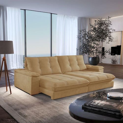 Sofá Dublin 02 Módulos De 100cm Br25cm Meu Sofá Online P321 Linho Dourado