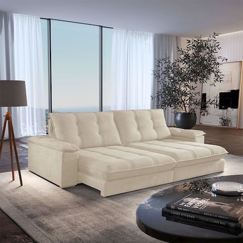Dimensões Produto Montado: Altura: 110 cm Largura dos Módulos: 240 cm (cada módulo possui 120 cm) Largura dos Braços: 25 cm cada braço Largura Total do Sofá com Braços: 290 cm Profundidade: 115 cm Peso: 107,9 kg