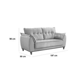 Sofá Espanha JC 3 Lugares 197cm Tecido Veludo O Sofá Espanha JC 3 Lugares 197cm Tecido Veludo é a escolha perfeita para quem busca unir conforto e elegância. O revestimento em veludo proporciona uma textura macia e agradável ao toque, além de um visual sofisticado que enriquece a decoração de qualquer sala de estar. Seu design clássico e atemporal garante que ele se adapte facilmente a diferentes estilos de ambiente, oferecendo o espaço ideal para relaxar e receber amigos e familiares com muito estilo.\nMEDIDAS\nAltura 98 cm\nLargura 197 cm\nProfundidade 80 cm\nCARACTERÍSTICAS\nFabricante JC Estofados\nModelo Sofá Espanha JC 3 Lugares\nGarantia 3 meses\nTipo de Produto Sofá 3 Lugares\nAmbiente Sala\nEstrutura Madeira de Eucalipto Reflorestado\nTecido Revestimento Veludo\nAssento Assento de 10cm com Espuma D28 e Percinta Elástica\nEncosto Almofadas Preenchidas com Fibra de Silicone\nMaterial Pés Madeira\nINFORMAÇÕES IMPORTANTES\nObjetos decorativos que porventura apareçam na foto, não acompanham o produto. Não nos responsabilizamos pela montagem/instalação dos produtos.\nMontagens, desmontagens e instalações são responsabilidades do cliente. Indicamos que contrate uma empresa de montagem ou um montador de sua confiança.\nAlém disso, favor verificar se os pés e acessórios estão dentro do forro inferior do produto. Em suma, todas as informações divulgadas sobre o produto são de responsabilidade do Fabricante.\nAs cores do produto podem variar de acordo com o seu monitor, a iluminação do ambiente em que você está e até mesmo a sua percepção visual. Além da cor, pequenos detalhes e acabamentos podem não ficar evidentes na foto, por isso as imagens são meramente ilustrativas.