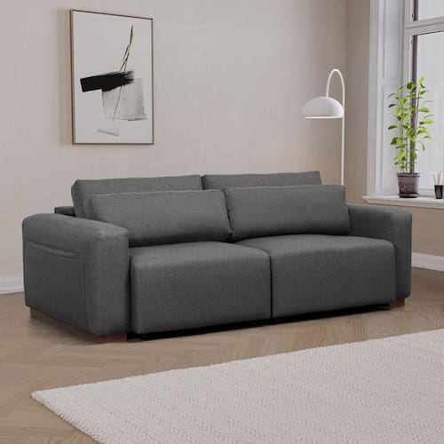 O sofá Essense possui um desenho minimalista, sofisticado e acolhedor com formas mais arredondadas que são um convite a desfrutar momentos de relaxamento e a diminuir o ritmo. Seu assento retrátil e extensível com molas bonnel, espuma D28 e persintas elásticas de excelente qualidade garantem conforto e resistência. As almofadas soltas do encosto são preenchidas com 100% de fibra siliconada, e podem ser encaixadas de diferentes formas para um repouso mais completo. A estrutura é fabricada em eucalipto reflorestado, seco e imunizado e os pés em madeira maciça com acabamento em verniz fosco. Além disso, possui bolso lateral porta objetos para que seu livro, controle remoto, tablet, etc, estejam sempre ao alcance das sua mãos