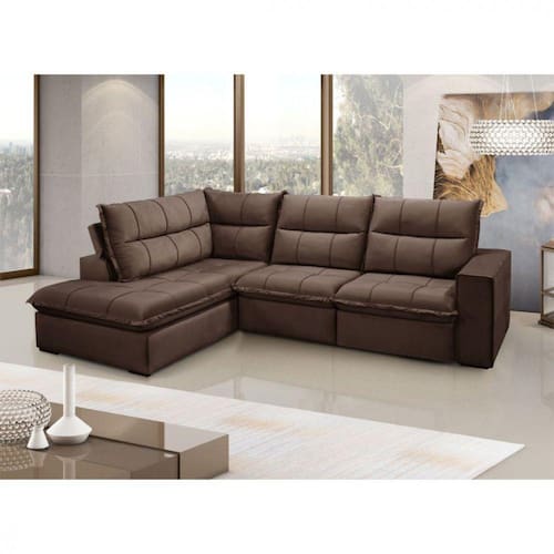 Esse modelo de estofado deixará sua sala muito mais moderna e aconchegante. Possui encosto reclinável e assento retrátil e produzido com madeira ecologicamente correta. Estrutura em madeira de lei -eucalipto proveniente de reflorestamento-.