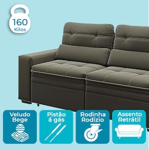 Seu sofá ideal está na Kasa Mix!O Sofá Filipinas é a combinação ideal de funcionalidade e conforto. Revestido em veludo sofisticado, traz charme e elegância para sua sala de estar, valorizando a decoração com um design moderno.Com assentos retráteis, encostos reclináveis e baú embutido, oferece praticidade no dia a dia, além de espaço extra para organização. Sua estrutura reforçada e acabamento de qualidade garantem durabilidade, conforto e estilo em um só produto.Ficha Técnica Sofá:Modelo: FilipinasMarca: SMPCor: GrafiteEnchimento: Espuma D26, BaúTecido: VeludoMaterial dos pés: PVCLargura: 208cmComprimento: 92cmComprimento Assento Aberto: 125cmAltura: 98cmSuporte de Peso: 160KgGarantia: 3 MesesAtenção:Antes da compra certifique-se de que o produto passa por elevadores, portas e corredores.As transportadoras não realizam entregas por escadas ou içamentos.Caso o item não caiba no elevador, a entrega será considerada concluída no térreo do prédio.A cor e tonalidade do produto pode variar de acordo com o dispositivo que o usuário está acessando.