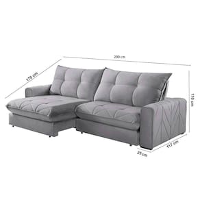 Dimensões: Altura: 110 cm Largura: 180 cm (02 Módulos de 90 cm) Largura do Sofá Com Braço: 230 cm Braço: 25 cm (Cada um) Profundidade : 117 cm (Fechado) Profundidade: 170 cm (Aberto)