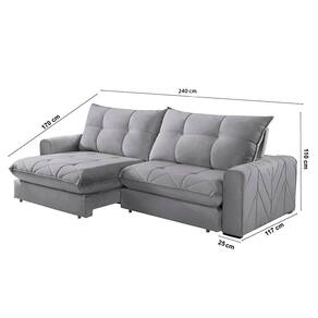 Dimensões: Altura: 96 cm Largura: 240 cm (02 Módulos de 120 cm) Largura do Sofá Com Braço: 290cm Braço: 25 cm (Cada um) Profundidade : 117 cm (Fechado) Profundidade: 170 cm (Aberto)