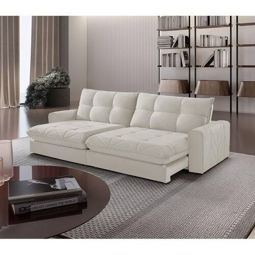 Assento: Assento com Percinta elastica, molas espirais, espuma D-28, pillow top de 25 cm.