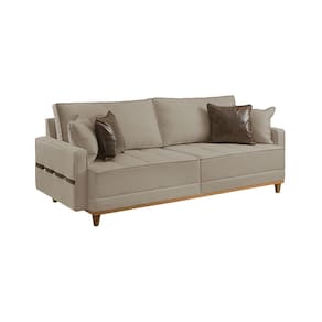 Sofa Fixo 3 Lugares M-203 2,00m Molas Bonnel Almofadas Soltas Linho Estofados Martins - Bege Médio