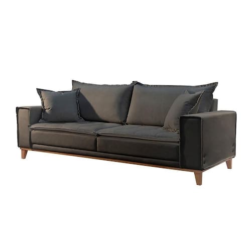 Com design elegante que combina a base de madeira, com o pillow top do assento, as almofadas de encosto, finalizando com o debrum no acabamento e o detalhe dos botões nas laterais. O resultado é uma peça linda que se adequa bem a diversos estilos e deixará seu ambiente moderno e confortável!