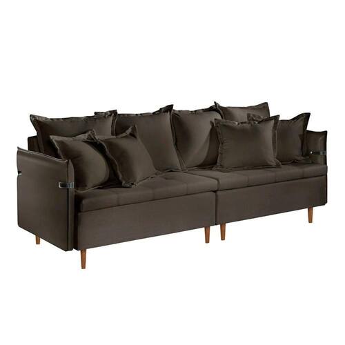 Modelo sofisticado e contemporâneo que combina os detalhes dos braços pilados com o capitonês do assento e as almofadas. Ideal para espaços compactos, ele é aconchegante e possui um design que vai elevar a decoração do seu ambiente para outro nível!