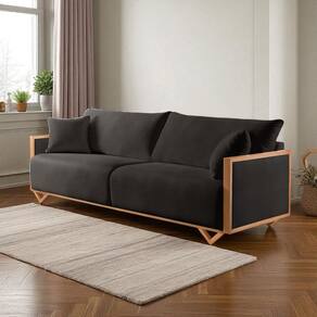 O sofá Lara é um modelo contemporâneo e minimalista. Suas linhas retas e a estrutura esbelta em madeira trazem leveza e modernidade ao ambiente. Com pés angulados e almofadas soltas, ele é ideal para quem busca conforto com sofisticação descomplicada.