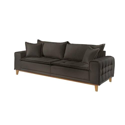 Com um visual elegante e moderno, o sofá conta com detalhes que valorizam o seu ambiente. Composto com capa nos braços, a base inteira com pés delicados, almofadas e o assento com pillow top capitonê, esse tipo de móvel oferece um maior conforto e beleza.