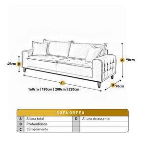 01 Sofá Fixo Orfeu Até 4 Lugares Luxo 220cm Castellar Móbile