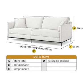 O sofá Ravi é a escolha perfeita para um design industrial-chic. Ele combina a robustez de sua estrutura metálica aparente com a leveza e o conforto das almofadas. Ideal para quem busca um estilo minimalista e urbano, eleva a decoração do seu ambiente com um toque de modernidade e elegância.