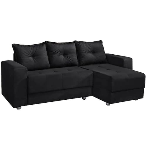 Sofá Florença 3 Lugares com Chaise Tecido Suede 200cm Cor Preto - Preto