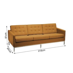 O Sofá Florence Knoll 3 Lugares é uma escolha prática e elegante para diferentes ambientes. Revestido em couro natural, oferece conforto aliado à resistência e durabilidade. Seu design reto dá um toque moderno e versátil, além de ser atemporal, combinando facilmente com vários estilos de decoração.