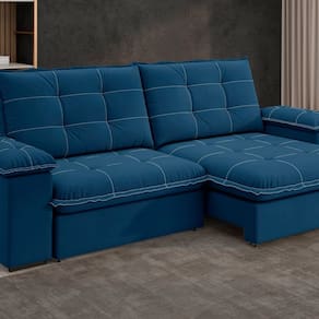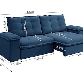 Sofá Fofao Premium Slim 2.50 Cm Retrátil e Reclinável 4 Lugares Azul Marinho - Azul Doce