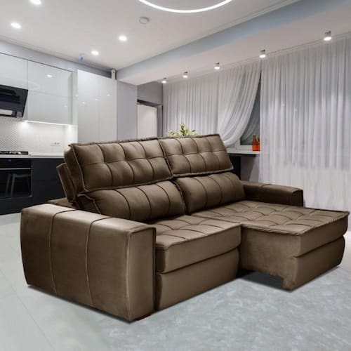 Sofa com estrutura de madeira de eucalipto, devidamente tratada e aparelhada com reforcos de cantoneiras e chap em osb.
