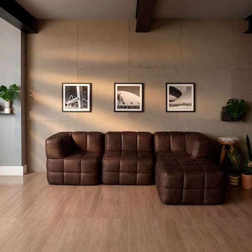 sofá guldi popup com 2 módulos canto central e puff corino café - Marrom Escuro