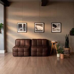 sofá guldi popup com 2 módulos centrais corino café - Marrom Escuro