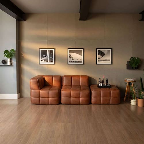 sofá guldi popup com módulo canto central e puff corino carao - Marrom