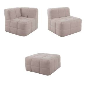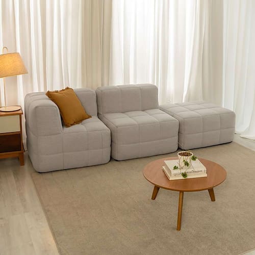 sofá guldi popup com módulo canto central e puff linho cru - Off White
