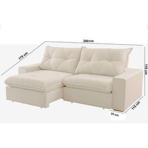 Dimensões: Altura: 110 cm Largura: 200 cm (02 Módulos de 100 cm) Largura do Sofá Com Braço: 250cm Braço: 25 cm (Cada um Profundidade : 115 cm (Fechado) Profundidade: 170 cm (Aberto)